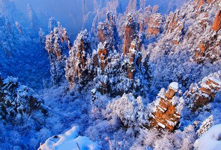 張家界三千奇峰、八百秀水,用“雄、奇、險、秀、幽”5字來概括,早已得到大眾的公認。張家界的山水,稱得上是風(fēng)景山水的經(jīng)典;游張家界,則成為人生的宿愿和幸事。飽覽張家界,可謂四時皆宜:春天,是大地充滿靈氣的季節(jié),張家界此時的山水,充滿著生氣,充滿著向往,它的每一座山峰,每一道水溝,都舉著搖曳多姿的花朵,是表示對游人的歡迎,更是表達一種生命的意境;夏天,是空氣膨脹欲望的季節(jié),張家界此時的山水,充滿著遐想,充滿著誘惑,它的一草一木,一枝一葉,都滴瀉著生命的翠綠,裝飾著每一座山峰,蘊含著人生的幻想和追求;秋天,是星月喜慶豐收的季節(jié),張家界此時的山水,一樣地走向深厚,一樣地寫滿沉穩(wěn),它的山山嶺嶺,它的溝溝壑壑,在翠綠的底色中亮出火一樣的紅葉,抒寫著熱情,歌吟著成熟與奔放;冬天,是風(fēng)花雪月般詩意的季節(jié),張家界此時的山水,冷峻中透著溫情,蒼茫里飽含著魄力,它的一座座石峰,它的一棵棵巖松,都是一個個冰清玉潔的世界,它們都玉樹臨風(fēng)般燃燒著,引發(fā)著游客的激情,而那些冰雪覆蓋的小溪,流水在動情地吟唱,就像有情人心中的歌吟,最易撩動愛人的衷腸。我愛張家界四季的景色,但我更愛張家界的冬天,我愛在冬天里與張家界的山水對話,我愛在冬天里到張家界的山水間去暢游,去作一種思想的飛翔! 張家界的冬天并不寒冷,這主要是因為四周多高山,這里的冬季多為晴朗天氣,故區(qū)域小氣候較為溫暖,暢游張家界無須冒嚴寒之苦,又可避開歷酷暑之難。即使是雨雪天氣,因為景區(qū)是一個高出的整體平臺,小地形則是一塊盆地,所有的景觀就好比一個放大的盆景,所以在游歷觀賞的行程中,并無寒氣逼人、冷酷加身的感覺。一旦遇上陰雨天氣,景區(qū)因海拔較高,山地氣候又特別明顯,放眼望去,枝枝葉葉便都成了水晶般的世界,精靈奇巧的霧凇千姿百態(tài),笨拙憨厚的灌木清純天成。若是有雪降臨,不管大小,山上立即便會是一個白雪皚皚的世界,恰似翡翠盤中堆砌著白玉,那些巖壁上的枯枝古樹,此時又煥發(fā)青春,讓人不由得想起兩句古詩:“春來苔作葉,冬至雪為花。”我曾陪《羊城晚報》的一位朋友冬游張家界,她興致極高地滿山里跑,她說:“此山此景,人生頭一回遭遇,可望而不可求,遺憾的是沒有看到雪境里的張家界。”真是老天作美。第二天,我們在山上走著走著,天空便飄起了雪花,頃刻之間,便是一個雪花飛舞的世界,大地上石峰上樹上身上的雪花,就像火苗一樣點燃了朋友的激情,她情不自禁地面對著山野吟哦起來——親切而新鮮的雪花,落下來,在夢幻深處,在心靈深處,就像飄落的雪白的火焰,溫暖我人生的境界點燃我生命的激情……雪花落下來,落滿大地、石峰和樹冠豐腴著山峰、溝壑和想象為詩意和行程增加了厚度,雪清新,溫暖,純潔,冷冽它是自然的語言,火辣辣的語氣中帶著熱情,還有看不見面的堅硬和銳利…… 作為一個南方的朋友,見到如此美妙的雪的世界,她的激動和驚喜,完全是我意料中的事;而讓我驚奇的是從不作詩的她,竟然意隨興致的吟唱出如此語意雙佳的詩作來。 雪中游張家界,你無需為安危著想,景區(qū)的工作人員,無論何時何地,都是游客的保護神。在我的記憶中,深深地記得2000年正月初一的那天,我與攝影界的朋友游張家界,每到一處,各種接待工作都井然有序,清路工人硬是在一尺余厚的積雪上,清出了通往每一個景區(qū)景點的道路,每一處易出事故的地方,都有工作人員守護。在天子山頂,我們遇到一群臺灣游客,他們高興地指著冰天雪地的景區(qū)景點說:“張家界山美水美人更美,張家界的雪景則是美上加美,每一座石峰都冰清玉潔,每一棵樹都玉樹臨風(fēng),真是一個美妙的雪世界啊!” 張家界的森林覆蓋率達99.7%以上,植物科目種類比整個歐洲大地還多。因此,冬游張家界,滿眼里仍然是綠色的世界,這就是它與北方景觀的區(qū)別。即使是冰天雪地,那臨風(fēng)玉樹,那挺立的石峰,透過冰雪,仍然會展現(xiàn)出綠色,就像一個翡翠的世界。置身于這樣的景致里,使你的感覺不寒不躁,如早春二月,心如春芽。這時,你心隨景移,興隨景起,你會由衷地感嘆:“這世界多么美妙,真是個賞雪景的勝地。”? 冬天去張家界賞雪景,游客不用自己為交通食宿多操心。如今去張家界,公路、鐵路、航路三位一體,十分方便,市內(nèi)去景區(qū)也已修成了高等級公路,返往暢通無阻。旅游通行是景區(qū)旅游,市內(nèi)住宿,各類檔次的賓館任由選擇。盡管景區(qū)山高溝深,路陡程長,但游客無需為勞累擔(dān)憂,景區(qū)內(nèi)已建成兩條上山索道和一條上山升降梯,上黃石寨、天子山、袁家界等核心景區(qū),只是一瞬間的事情。即使在山上走累了,隨處可以叫一架滑竿,轎夫都是些訓(xùn)練有素的精壯青年,他們可以抬著你慢悠悠地一邊瀏覽著雪中的景致,還會一邊為你講些民俗或是一些山中的故事。他們會為你噓寒問暖,寧肯自己多吃些苦,多受些累,他們也會做到讓游客舒心滿意。這時,你還不心曠神怡么?你渾身會涌起一股股溫暖的感覺來。 朋友,下雪時,到張家界觀雪去,那是一場雪白的火焰,將會點燃你生命的激情和幻想,那些個性的石頭和倔強的樹,那里的民俗風(fēng)情和鄉(xiāng)民情操,將會成為你生命中人性修養(yǎng)的參照。
